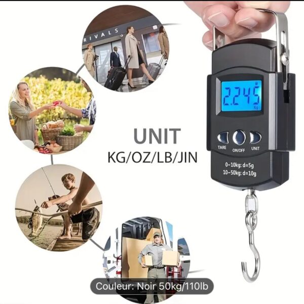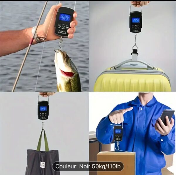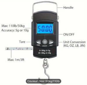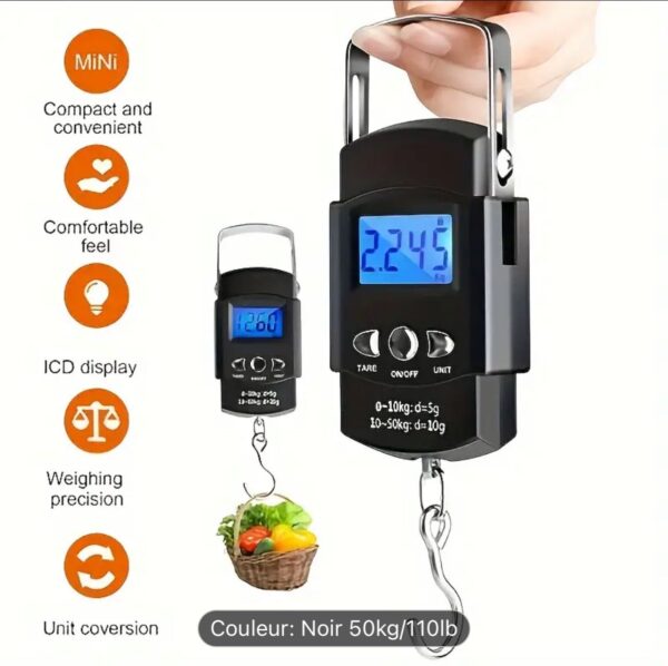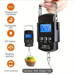 ميزان رقمي صغير الحجم للأمتعة – أداة وزن محمولة عالية الدقة للاستخدام المنزلي والسفر، ضوء LED، يعمل بالبطارية، أسود